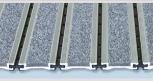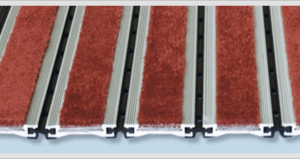 Recess Mounted Entry Mats consists of an extruded aluminium tread rail which carries factory installed inserts of either abrasive for slip resistance, carpet for dirt control or vinyl for limited slip resistance and dirt control.