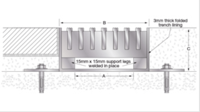 Finishes – As standard the grates and liners are mill finish aluminium depending on the model selected. On request and for an additional charge the aluminium units can be supplied with a chromed finish or the aluminium sections can be supplied in clear anodised finish. Stock standard units are available for the ALBATH-3S, ALBATH-4S in lengths of 1200mm.