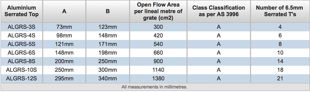 ALGRS Series serrated top aluminium trench grates are designed for surface mounted pedestrian applications. They are commonly used in office building entrances, homes, parks, recreational harbour or beach foreshores, schools, hospitals, hotels, showrooms, arenas and stadiums etc.