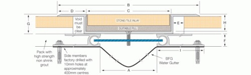 The Latham PAVA-Inlay Series ASMP Standard floor expansion joint covers are designed to accommodate a 30mm deep inlay and have a serrated top aluminium flange for slip resistance. The systems have tapered edge surface mounted cover plates to control the movement in the structure. This Series can carry a BFG water gutter and if required the series can accommodate the Latham Fire Barrier System when the installation joint width is 50mm or wider. The overall depth below the finished floor height is 65mm. The systems offer various levels of movement in 6 directions.