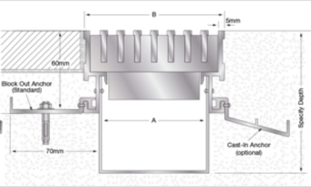 The material can be supplied in custom lengths to 4,000mm and factory manufactured fully welded angles and T’s are available for the grates and liners if required.The system is also available with block ends for the frame and trench if required. When the trench liner is used and factory fabricated block ends installed, the system will be an enclosed trough.