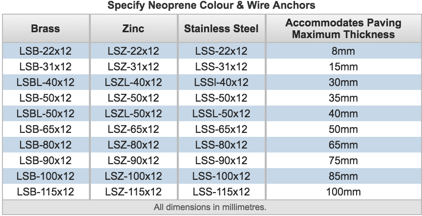 Loc strips are supplied with the following metal sideplate thicknesses: standard brass and zinc profiles – 1mm; stainless steel type 304 – 0.7mm (stainless steel products are not recommended for finish to be ground insitu). Optional 3mm thick brass and zinc sideplates are available. Specify 3mm brass (LSB3MM) or 3mm aluminium (LSZ3MM).