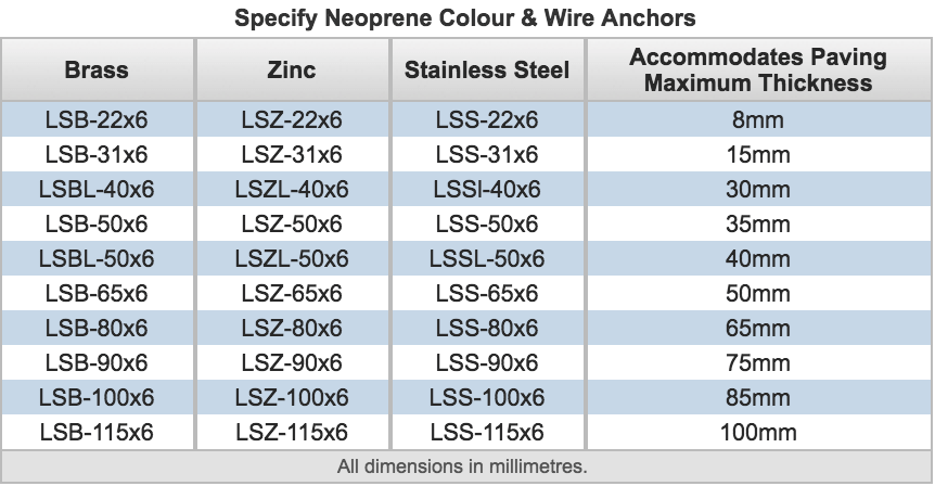 Loc strips are supplied with the following metal sideplate thicknesses: standard brass and zinc profiles – 1mm; stainless steel type 304 – 0.7mm (stainless steel products are not recommended for finish to be ground insitu). Optional 3mm thick brass and zinc sideplates are available. Specify 3mm brass (LSB3MM) or 3mm aluminium (LSZ3MM).