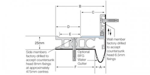 The Latham Ultimate Series Surface Fixed 25mm Deep floor-to-wall expansion joint covers are available with aluminium and stainless steel cover plates; this series can carry a BFG water gutter if required. The series has a depth below the finished floor height of 25mm. The series is designed to be installed in a retro fit application when an expansion joint cover has been left out of the design or installation and it needs to be cut in later. This system offers relatively easy and quick retro fit application and does not require the surrounding floor finish to be removed. When the installation structural joint width exceeds 50mm the series can accommodate the Latham Fire Barrier System.