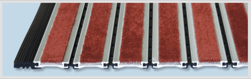 The system consists of an extruded aluminium tread rail which carries factory installed inserts carpet for dirt control. The system is continuously hinged with a neoprene joint which reduces traffic noise and rattle.