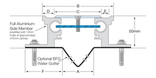 The Latham Ultimate Series Deep (FASM 50) 50mm deep floor and floor-to-wall expansion joint covers are available with aluminium and stainless steel cover plates. This series can carry a BFG or VWS water gutter if required. The series has a depth below the finished floor height of 50mm. The series is designed to be installed with Terrazzo Tiles with an overall set down of approximately 50mm, although it is suitable for installations with other floor finishes as well. When the installation structural joint width exceeds 50mm the Series can accommodate the Latham Fire Barrier system.