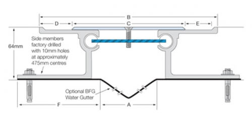 The Latham Ultimate Series Deep (FASM 64) 64mm deep floor expansion joint covers are available with aluminium and stainless steel cover plates. This series can carry a BFG water gutter if required. The series has a depth below the finished floor height of 64mm. The series is designed to be installed with terrazzo tiles with an overall set down of approximately 64mm, although it is suitable for installations with other floor finishes as well. When the installation structural joint width exceeds 50mm the Series can accommodate the Latham Fire Barrier system.