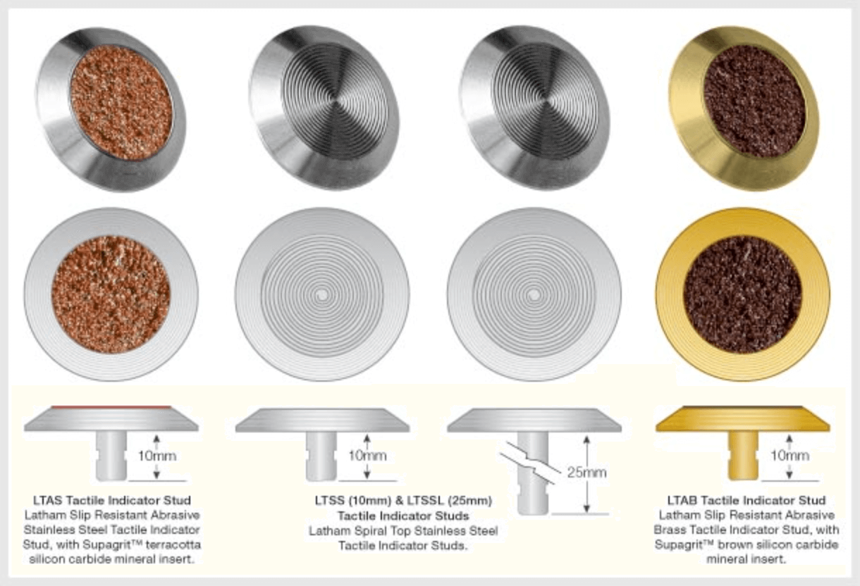 The Latham Tactile Indicator Studs are designed for applications where rubber and concrete based tactile tiles may not be suitable.