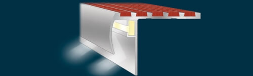 Latham Tredlite Illuminated Slip Resistant Safety Stair Tread Nosings feature the newest safe low voltage 24V LED lighting technology, which is cheap and efficient to run. For most applications all necessary hardware is supplied, including transformers which will simply plug into a power point.