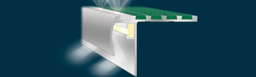 Latham Tredlite Illuminated Slip Resistant Safety Stair Tread Nosings feature the newest safe low voltage 24V LED lighting technology, which is cheap and efficient to run. For most applications all necessary hardware is supplied, including transformers which will simply plug into a power point.